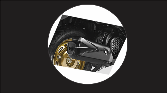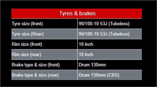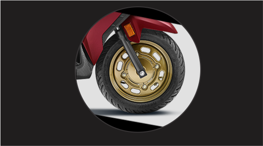 TELESCOPIC SUSPENSION AND FRONT 90/90-12 TUBELESS TYRE